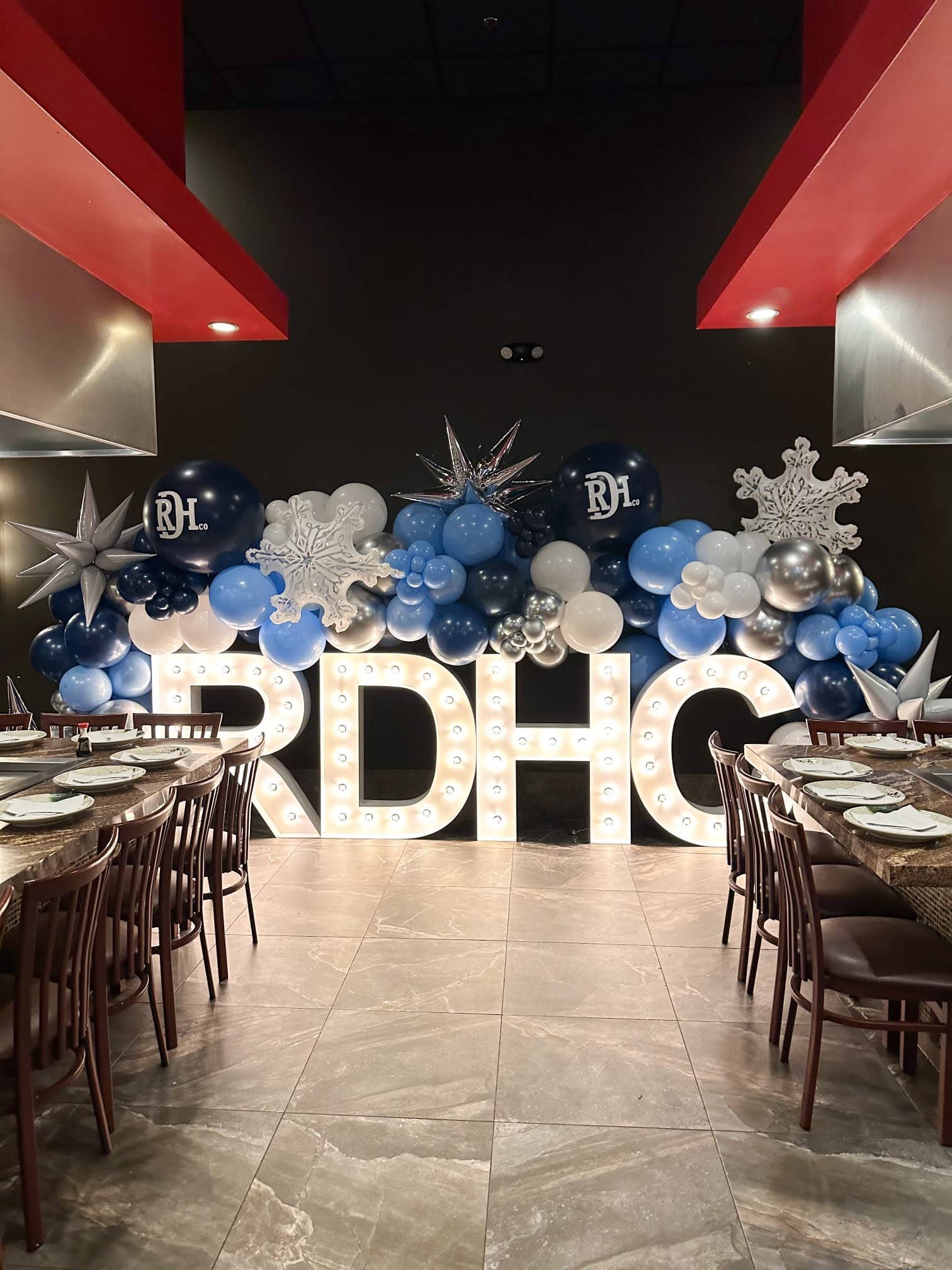 Add a touch of glamour and personalization to your event with our stunning marquee letters. We offer all 26 letters of the alphabet, along with special characters like #, !, &, and ?. Crafted from durable aluminum, our marquee letters are suitable for both indoor and outdoor use, allowing you to create a captivating ambiance wherever your event takes place. Secure your rental by making a 50% deposit and bring your vision to life with these luminous, customizable elements.